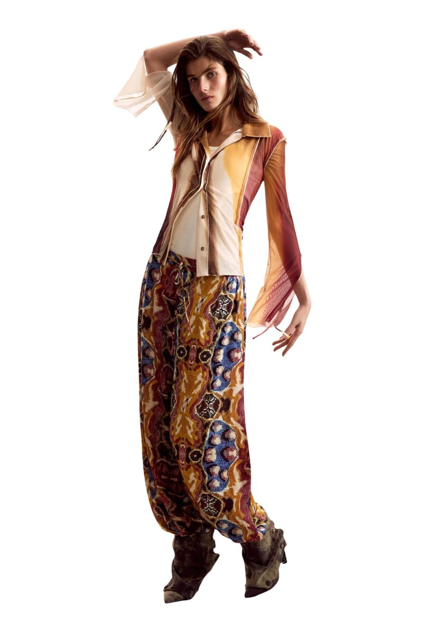 Camicia Maniche Lunghe Fantasia, Paint Lacroix, Scollo A "v", Bottoni, Polsini Con Lacci, Dettagli A Contrasto, Logo