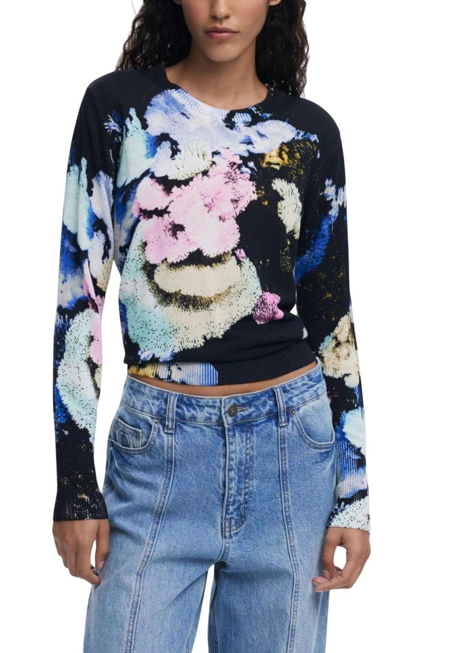 Maglia Maniche Lunghe Fantasia, Jers Nenufar Lacroix, Girocollo, Logo